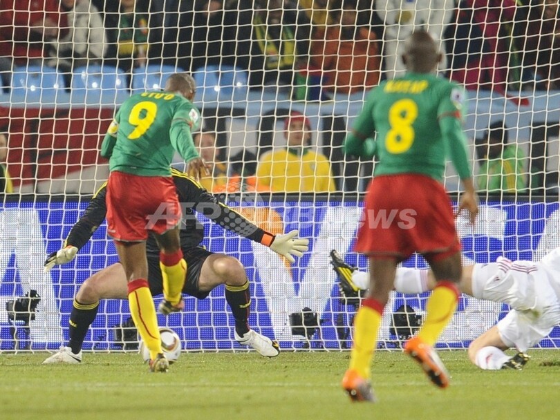 【6月20日 AFP】(記事更新、写真追加)2010年サッカーW杯南アフリカ大会(2010 World Cup)1次リーグE組、カメルーン対デンマーク。デンマークが2-1で逆転勝ちした。2連敗となったカメルーンは1次リーグ敗退が決まった。