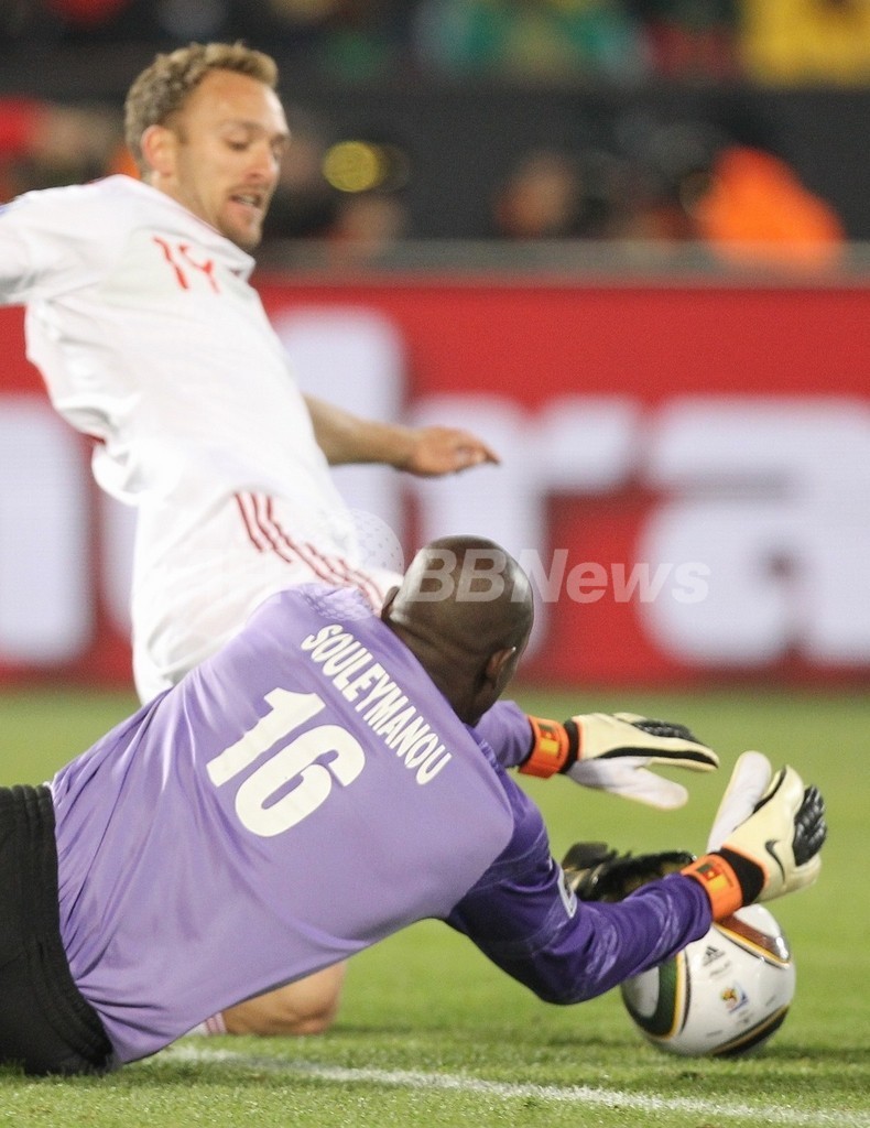 【6月20日 AFP】(記事更新、写真追加)2010年サッカーW杯南アフリカ大会(2010 World Cup)1次リーグE組、カメルーン対デンマーク。デンマークが2-1で逆転勝ちした。2連敗となったカメルーンは1次リーグ敗退が決まった。
