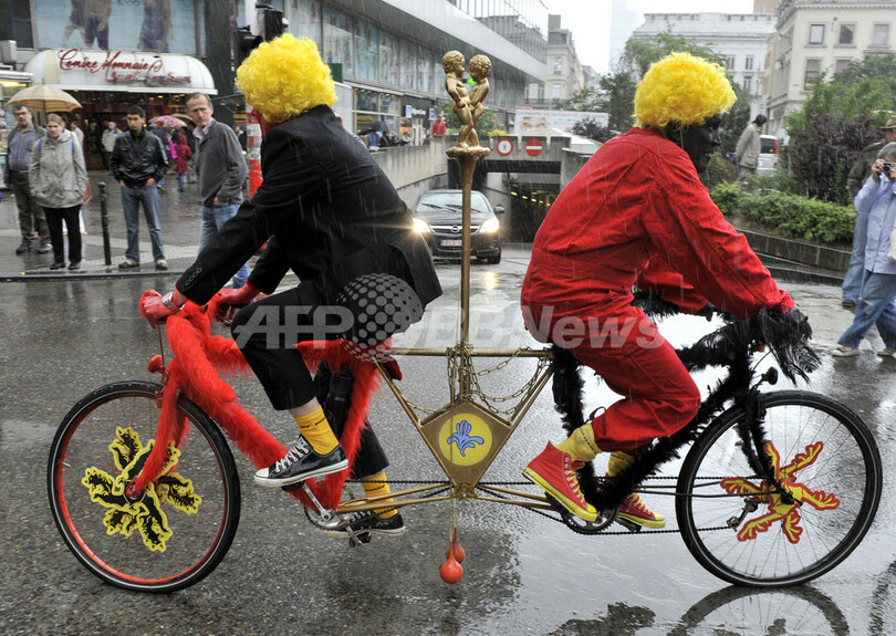 【6月20日 AFP】スペイン・サラゴサ(Saragossa)で約10年前に始まった、裸で自転車に乗って車社会に抵抗の意思を示す毎年恒例の自転車デモ、「サイクロヌーディスタ(Cyclonudista)」が19日、ベルギーの首都ブリュッセル(Brussels)中心部で行われた。(c)AFP