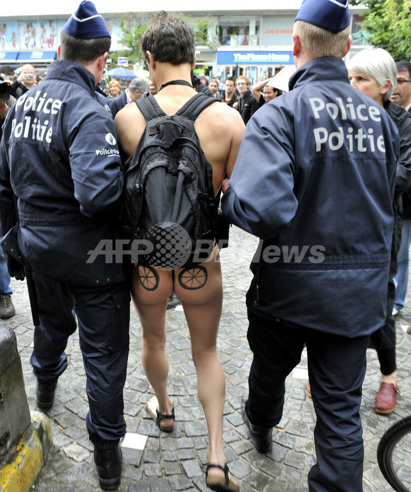 【6月20日 AFP】スペイン・サラゴサ(Saragossa)で約10年前に始まった、裸で自転車に乗って車社会に抵抗の意思を示す毎年恒例の自転車デモ、「サイクロヌーディスタ(Cyclonudista)」が19日、ベルギーの首都ブリュッセル(Brussels)中心部で行われた。(c)AFP