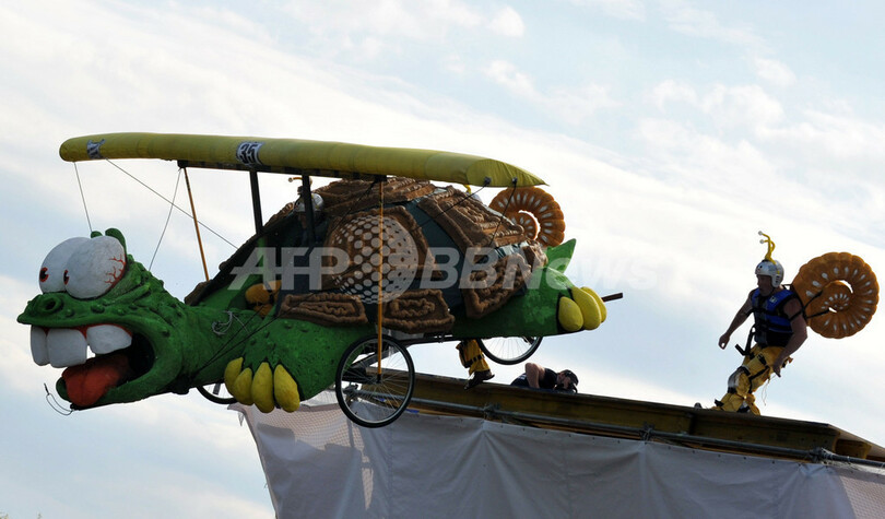 ニュース ライフ こぼれ話 ドラゴンや入れ歯、トウモロコシが空を飛ぶ!鳥人間コンテスト 2010年6月21日 18:57 発信地:キエフ/ウクライナ [ ロシア・CIS ウクライナ ] このニュースをシェア ‹ › ❮ 11/11 ❯ ウクライナの首都キエフ(Kiev)で19日、オーストリアの健康飲料メーカー、レッドブル(Red Bull)が主催する人力飛行機コンテスト「フルークターク(Flugtag、ドイツ語で「飛行の日」)」が開催され、39チームが持ち寄った自慢の自作飛行機で大空に挑んだ。写真は、自作の人力飛行機で空を飛ぶ「Ot vinta」チームのメンバーら(2010年6月19日撮影)。(c)AFP/SERGEI SUPINSKY 画像作成中 ! 【6月21日 AFP】ウクライナの首都キエフ(Kiev)で19日、オーストリアの健康飲料メーカー、レッドブル(Red Bull)が主催する人力飛行機コンテストコンテスト「フルークターク(Flugtag、ドイツ語で「飛行の日」)」が開催され、39チームが持ち寄った自慢の自作飛行機で大空に挑んだ。(c)AFP ライフ 一覧へ> メディア・報道関係・法人の方向け 写真・動画 購入のお問合せ>