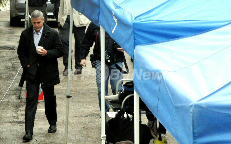 新作映画の撮影に臨むジョージ・クルーニー、イタリア