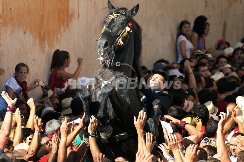 ニュース ライフ 馬ものけぞる?サン・フアン祭りのパレード スペイン 2010年6月24日 11:37 発信地:シウダデーラ/スペイン [ ヨーロッパ スペイン ] このニュースをシェア ‹ › ❮ 1/10 ❯ 24日の聖ヨハネ(サン・フアン)の前日の23日、サン・フアン祭りの馬のパレードがスペイン・メノルカ(Menorca)島シウダデーラ(Ciutadella)で行われた。写真は、シウダデーラで行われた馬のパレードで群衆の中で後ろ脚で立つ馬(2010年6月23日撮影)。(c)AFP/Jaime REINA 画像作成中 ! 【6月24日 AFP】24日の聖ヨハネ(サン・フアン)の前日の23日、サン・フアン祭りの馬のパレードがスペイン・メノルカ(Menorca)島シウダデーラ(Ciutadella)で行われた。(c)AFP ライフ 一覧へ> メディア・報道関係・法人の方向け 写真・動画 購入のお問合せ>