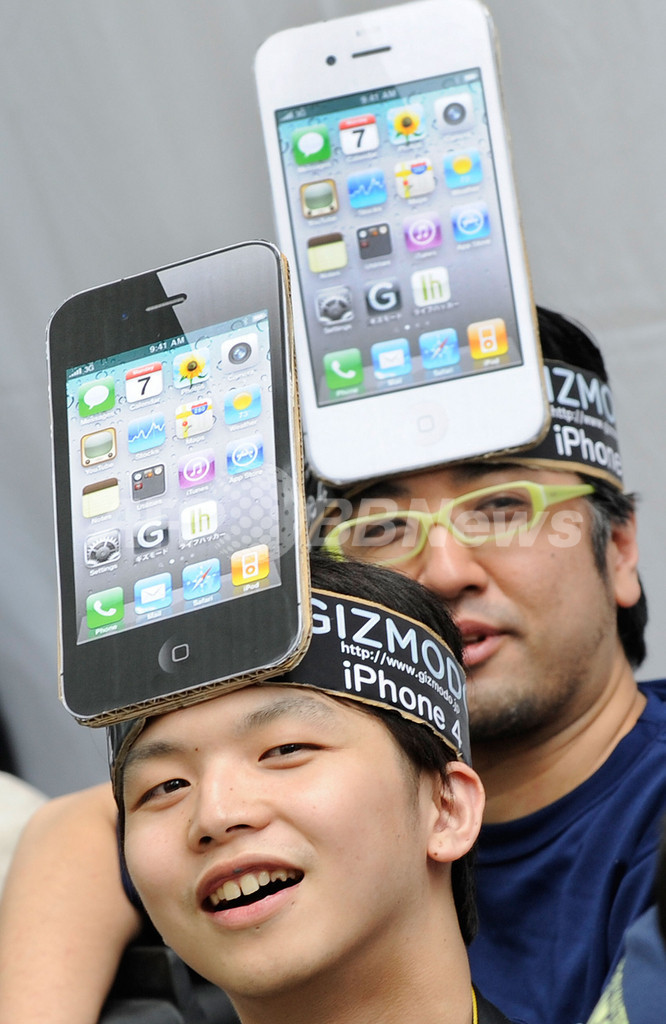 【6月24日 AFP】米アップル(Apple)の携帯電話端末iPhone(アイフォーン)の最新モデル「iPhone4」が24日発売され、東京・銀座のアップル直営店では予約できなかった500人以上が列を作った。