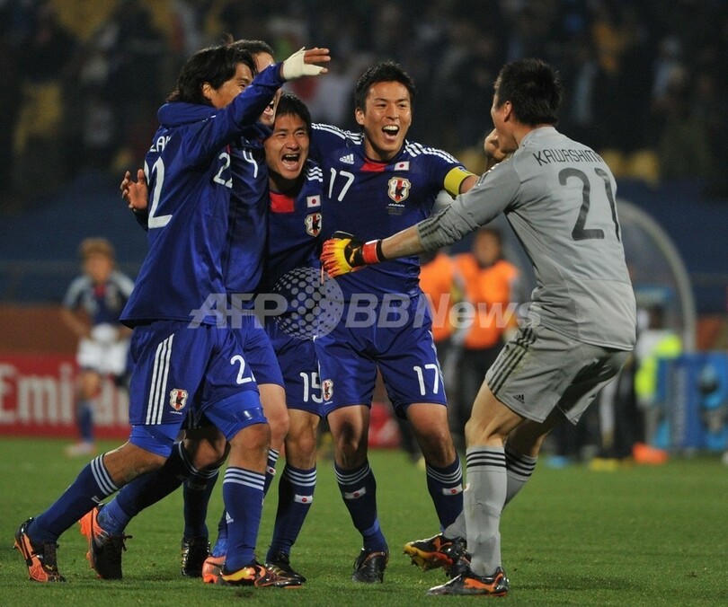 【6月25日 AFP】(記事更新、写真追加)2010年サッカーW杯南アフリカ大会(2010 World Cup)1次リーグE組、デンマーク対日本。日本は3-1で勝利し、勝ち点6(2勝1敗)の同組2位で決勝トーナメントに進んだ。日本の決勝トーナメント進出は、自国開催以外のW杯では初めて。