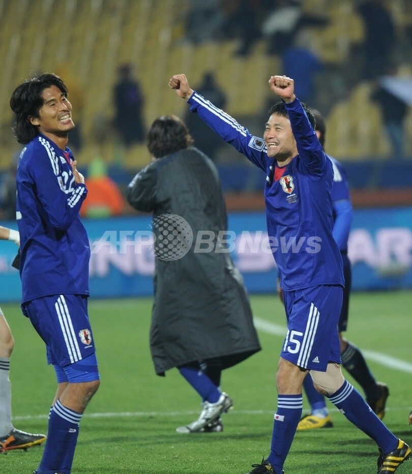 【6月25日 AFP】(記事更新、写真追加)2010年サッカーW杯南アフリカ大会(2010 World Cup)1次リーグE組、デンマーク対日本。日本は3-1で勝利し、勝ち点6(2勝1敗)の同組2位で決勝トーナメントに進んだ。日本の決勝トーナメント進出は、自国開催以外のW杯では初めて。