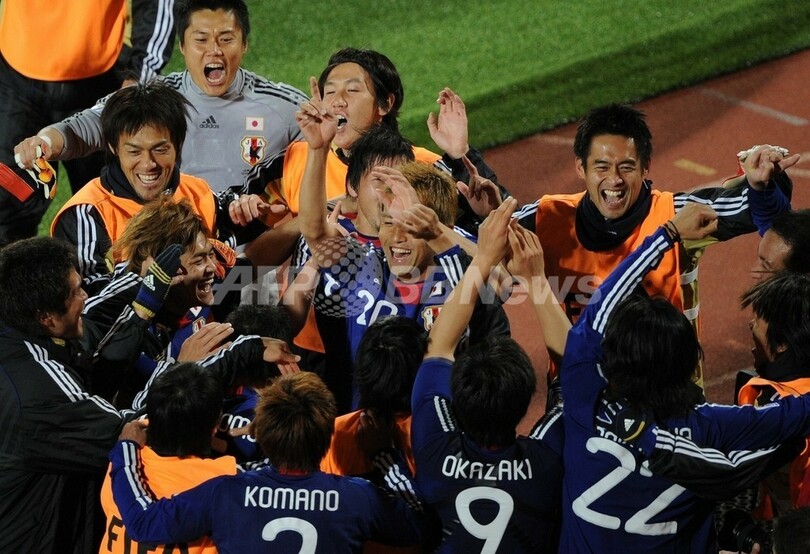 【6月25日 AFP】(記事更新、写真追加)2010年サッカーW杯南アフリカ大会(2010 World Cup)1次リーグE組、デンマーク対日本。日本は3-1で勝利し、勝ち点6(2勝1敗)の同組2位で決勝トーナメントに進んだ。日本の決勝トーナメント進出は、自国開催以外のW杯では初めて。