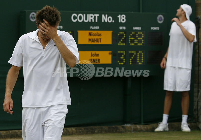 【6月25日 AFP】テニスのウィンブルドン選手権(The Championships Wimbledon 2010)男子シングルス1回戦で、2日連続で日没のため中断したニコラ・マウー(Nicolas Mahut、フランス)対ジョン・イズナー(John Isner、米国)の試合が24日再開され、イズナーが第5セットを70-68でとり、合計11時間5分におよぶ死闘を制した。