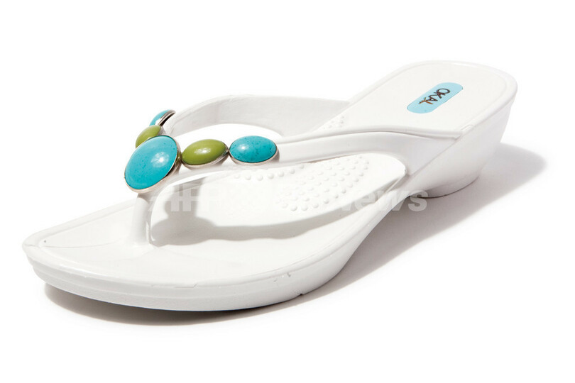 今夏も、キュートな柄のリボンやフラワーモチーフ、エレガントなストーンをあしらったものなど、フレッシュなコレクションが登場。トレンドを押さえたおしゃれでハッピーなデザインとポップなカラーが豊富に揃い、ふだん使いからビーチウエディングまでシーンを問わず履きこなせる。もちろん、足に柔らかくフィットし濡れても滑りにくいマイクロプラスト素材や、人間工学とリフレクソロジーの考えに基づいたデザイン、足に負担をかけないヒールの高さなど、いつでも心地良くいられる快適性はそのまま。
