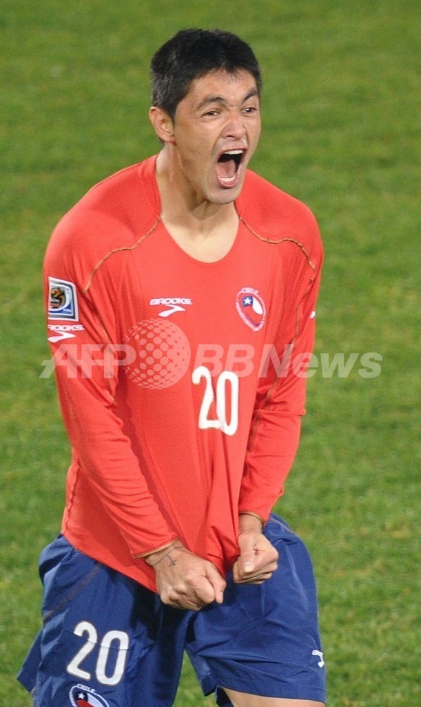 チリは2点を失った直後にマルコ・エストラーダ(Marco Estrada)が2枚目のイエローカードで退場し、10人となったが、後半2分にロドリゴ・ミジャール(Rodrigo Millar)の得点で1点を返した。(c)AFP