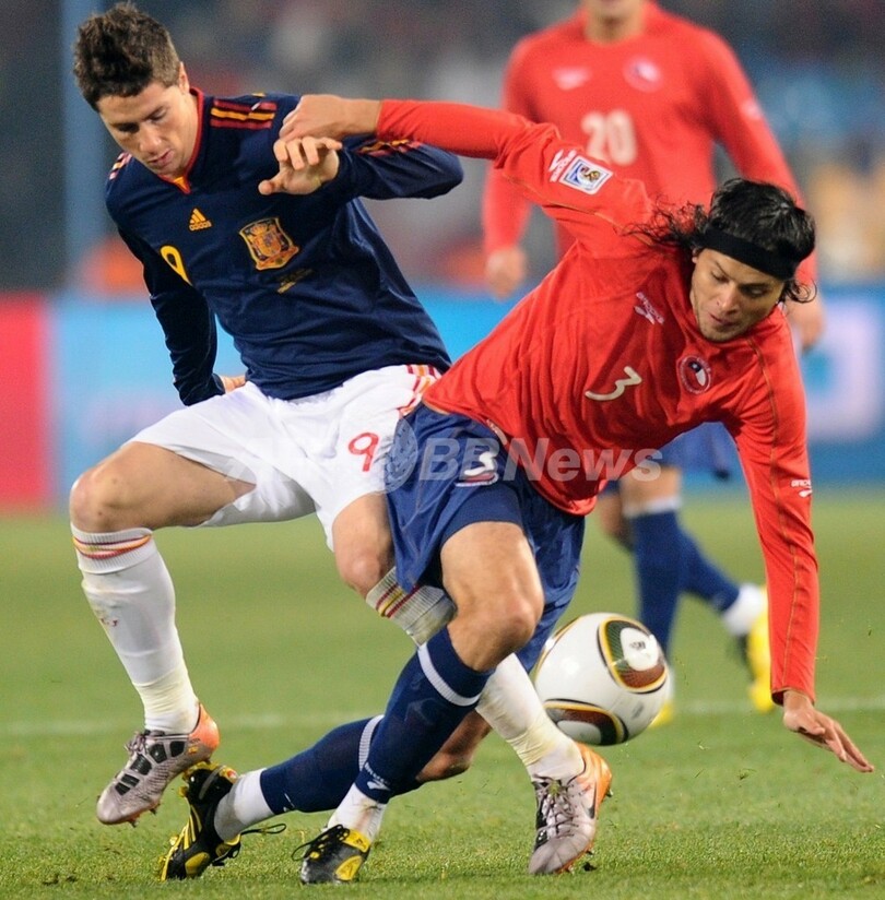 【6月26日 AFP】(記事更新、写真追加)2010年サッカーW杯南アフリカ大会(2010 World Cup)1次リーグF組、チリ対スペイン。試合はスペインが2-1で勝利。スペインが同組1位、敗れたチリが同組2位で決勝トーナメントに進んだ。