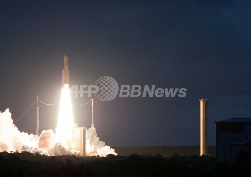 【6月27日 AFP】技術的な理由から2回にわたって打ち上げが延期されていた欧州宇宙機関(European Space Agency、ESA)のロケット「アリアン5(Ariane 5)」が26日、2つの人工衛星を軌道に乗せることに成功した。