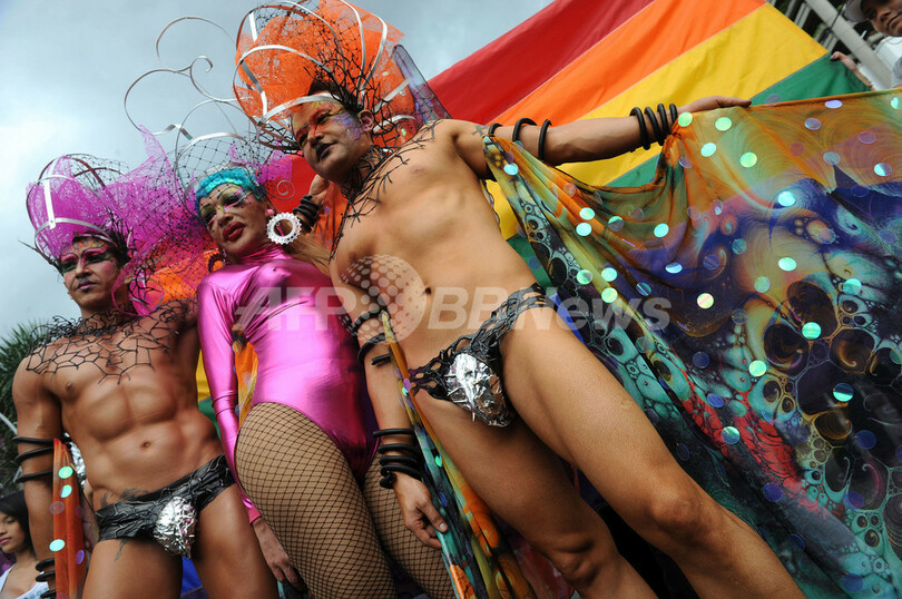 年に一度の同性愛者らの祭典「ゲイ・プライド・パレード(Gay Pride Parade)」が、コロンビアの首都ボゴタ(Bogota)やアンティオキア(Antioquia)州のメデジン(Medellin)で開かれた(2010年6月27日撮影)。(c)AFP/Raul ARBOLEDA