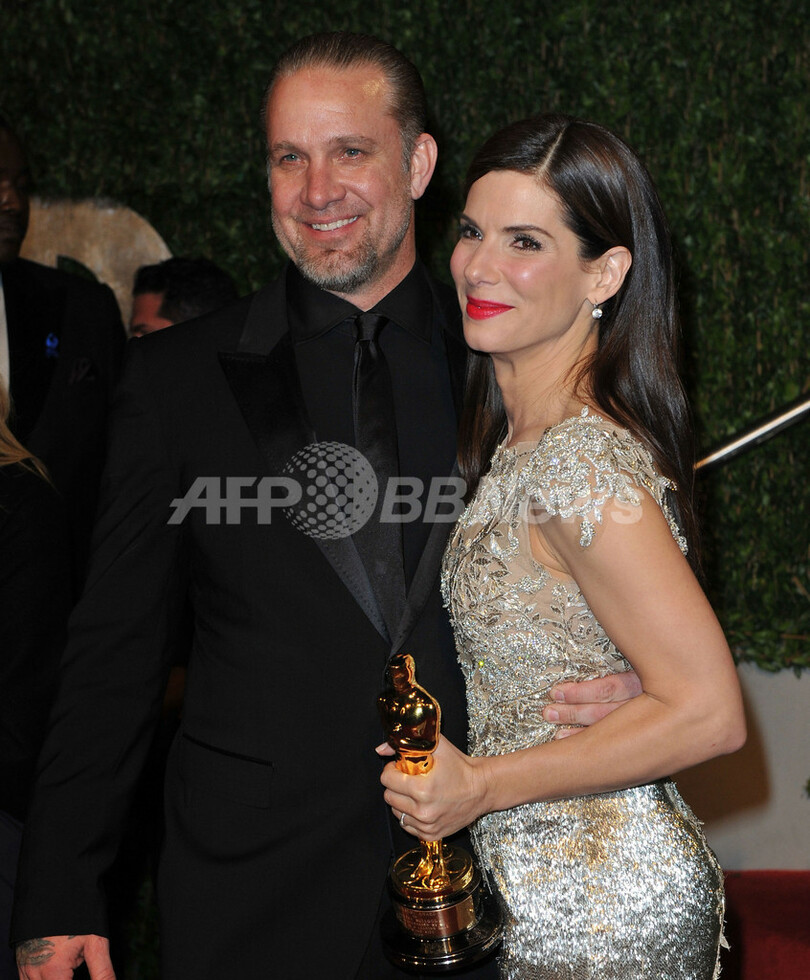 ブロックさんは3月、『しあわせの隠れ場所(The Blind Side)』でアカデミー主演女優賞を獲得し、受賞スピーチではジェイムズさんへの感謝を繰り返していた。しかしそのわずか10日後、ジェイムズさんとタトゥー・モデルでストリッパーのミシェル・マギー(Michelle McGee)さんとの浮気が報じられ別居した。(c)AFP