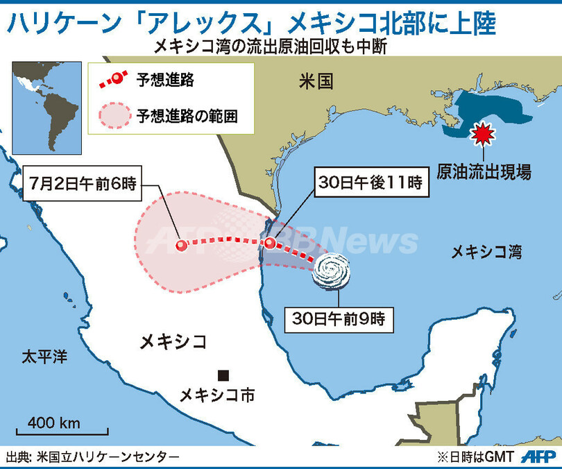 ニュース 社会 図解 【図解】ハリケーン「アレックス」の予想進路 2010年7月1日 16:27 発信地:マイアミ/米国 [ 北米 米国 ] このニュースをシェア (c)AFP 【7月1日 AFP】米国立ハリケーンセンター(National Hurricane Center、NHC)は、今季1号のハリケーン「アレックス(Alex)が米南部国境に近いメキシコ北部沿岸の町ラ・ペスカ(La Pesca)に上陸したと発表した。図はアレックスの予想進路を示したもの。(c)AFP 社会 一覧へ> メディア・報道関係・法人の方向け 写真・動画 購入のお問合せ>