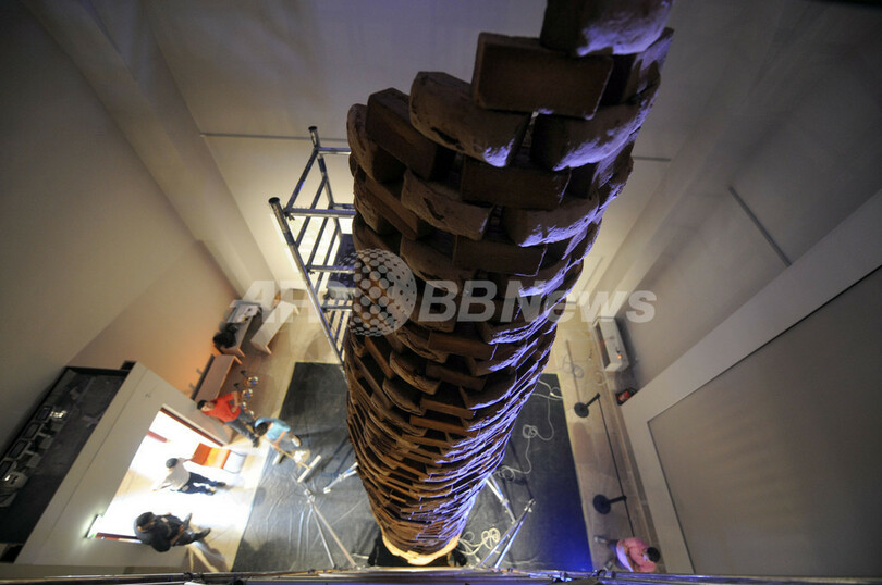 【7月2日 AFP】高さ7.7メートルの巨大ケーキの塔「空腹なき塔(Tower without hunger)」が、パリ(Paris)の建築遺産博物館(Cite de l'Architecture)に設置されている。建築家のジャン・ボカベイユ(Jean Bocabeille)氏とシェフのジル・スタッサール(Gilles Stassart)氏が世界一高さのあるケーキの記録を更新しようと作ったもの。アーモンドとスポンジケーキでできているが、食べることはできない。(c)AFP
