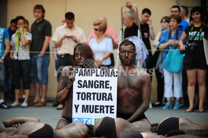 PETA、裸体で闘牛に抗議 スペイン・パンプロナ