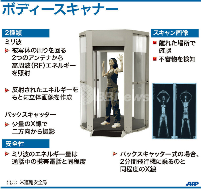 ニュース ライフ 図解 【図解】ボディースキャナー 2010年7月5日 15:57 発信地:韓国 [ 韓国・北朝鮮 韓国 ] このニュースをシェア (c)AFP 【7月5日 AFP】図は、空港で使用されているボディースキャナーの仕組みについて示したもの。(c)AFP<ニュース解説画像一覧へ> ライフ 一覧へ> メディア・報道関係・法人の方向け 写真・動画 購入のお問合せ>