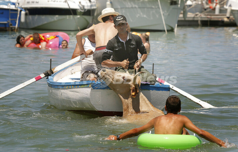 ニュース ライフ こぼれ話 勢い余って海へ落下、スペイン南部の牛追い 2010年7月6日 11:50 発信地:デニア/スペイン [ ヨーロッパ スペイン ] このニュースをシェア ‹ › ❮ 4/8 ❯ デニアスペイン南部の港町デニア(Denia)で5日、恒例の牛追い祭りが開催され、参加者が牛と一緒に豪快に海に飛び込んだ。写真は牛を引き上げようとする人びと(2010年7月5日撮影)。(c)AFP/JOSE JORDAN 画像作成中 ! 【7月6日 AFP】スペイン南部の港町デニア(Denia)で5日、恒例の牛追い祭りが開催され、参加者を追ってきた牛が一緒になって海に飛び込んでしまう姿が見られた。(c)AFP ライフ 一覧へ> メディア・報道関係・法人の方向け 写真・動画 購入のお問合せ>