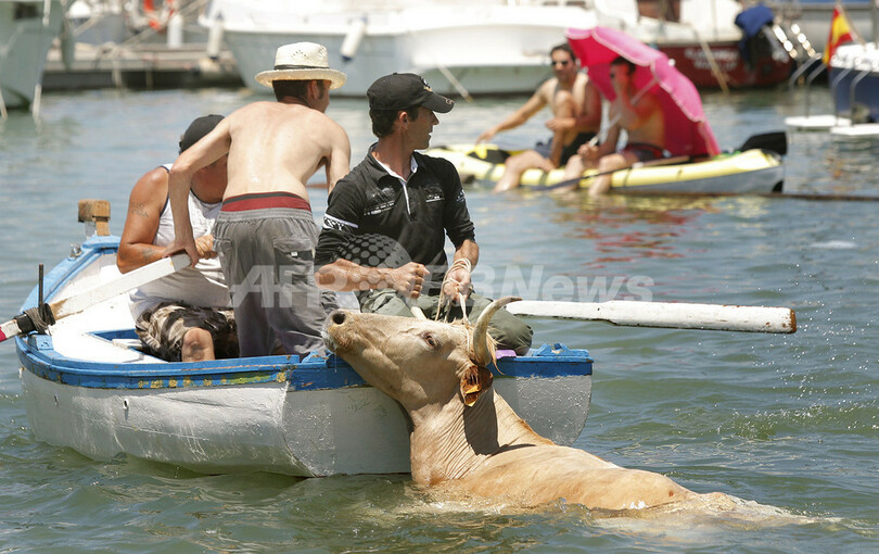 ニュース ライフ こぼれ話 勢い余って海へ落下、スペイン南部の牛追い 2010年7月6日 11:50 発信地:デニア/スペイン [ ヨーロッパ スペイン ] このニュースをシェア ‹ › ❮ 2/8 ❯ デニアスペイン南部の港町デニア(Denia)で5日、恒例の牛追い祭りが開催され、参加者が牛と一緒に豪快に海に飛び込んだ。写真は牛を引き上げようとする人びと(2010年7月5日撮影)。(c)AFP/JOSE JORDAN 画像作成中 ! 【7月6日 AFP】スペイン南部の港町デニア(Denia)で5日、恒例の牛追い祭りが開催され、参加者を追ってきた牛が一緒になって海に飛び込んでしまう姿が見られた。(c)AFP ライフ 一覧へ> メディア・報道関係・法人の方向け 写真・動画 購入のお問合せ>