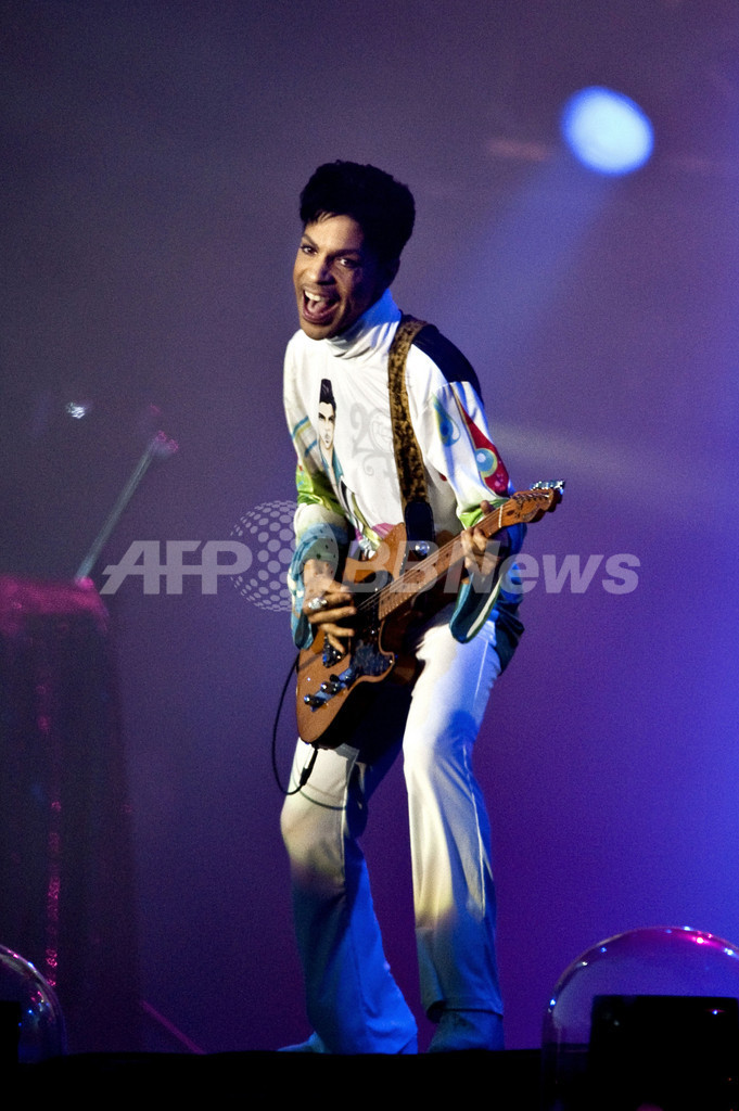デンマークのロスキレ(Roskilde)で1~4日、野外音楽フェス「ロスキレ・フェスティバル(Roskilde Festival)」が開催され、各国のアーティストが出演し、約7万5000人が来場した。写真は、ステージでパフォーマンスを披露するプリンス(Prince、2010年7月4日撮影)。(c)AFP/SCANPIX/Jens Dige