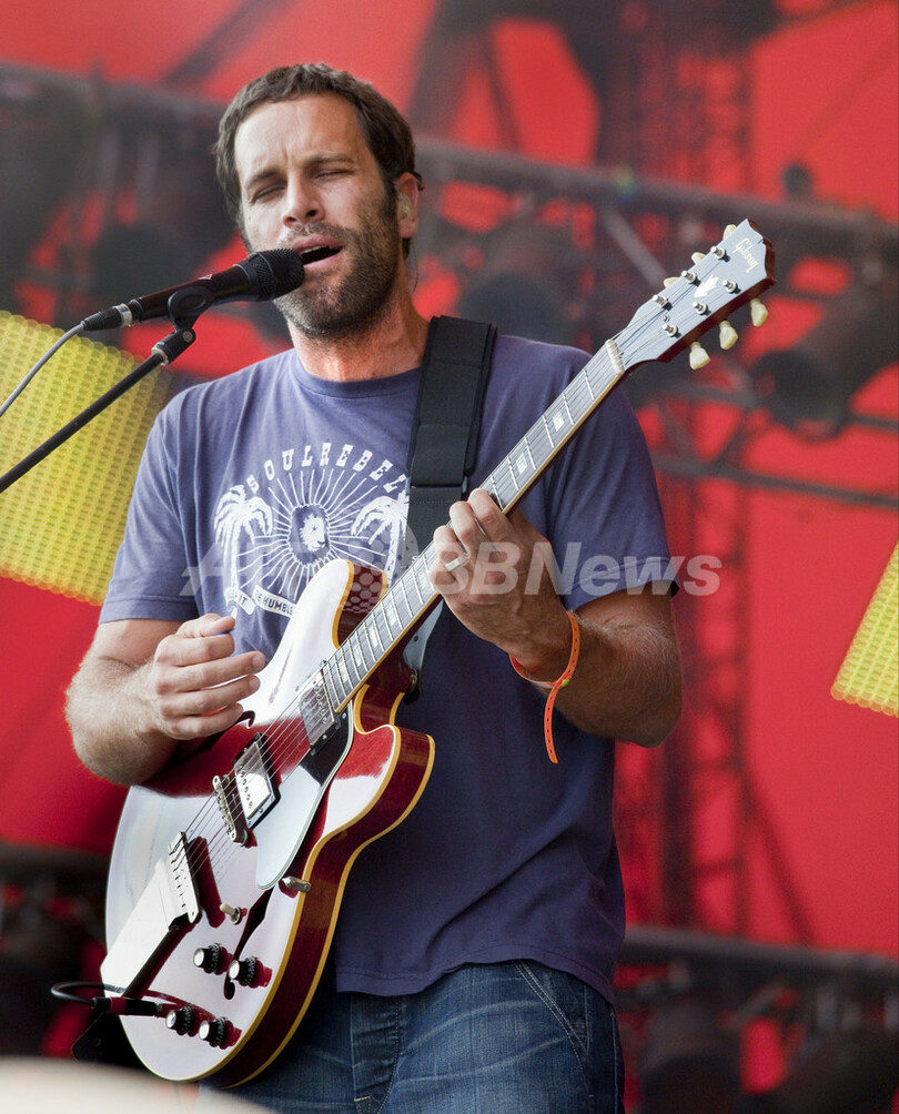 デンマークのロスキレ(Roskilde)で1~4日、野外音楽フェス「ロスキレ・フェスティバル(Roskilde Festival)」が開催され、各国のアーティストが出演し、約7万5000人が来場した。写真は、ステージでパフォーマンスを披露するジャック・ジョンソン(Jack Johnson、2010年7月4日撮影)。(c)AFP/Scanpix/Torben Christensen