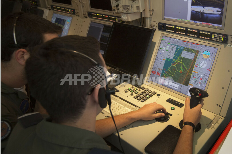 写真は、イスラエル中部パルマヒム(Palmahim)空軍基地から大型無人機「ヘロン(Heron)」を操作する兵士(2010年5月3日撮影)。(c)AFP/MENAHEM KAHANA