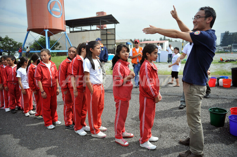 JICA)の監督の下、子どもたちが救急救助訓練を行なった。(c)AFP