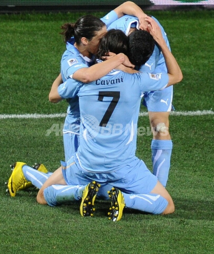 ウルグアイはロスタイム、フォルランの蹴ったフリーキック(FK)がバーに当たり、再度追いつくことができなかった。