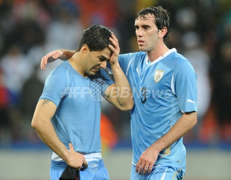 ウルグアイはロスタイム、フォルランの蹴ったフリーキック(FK)がバーに当たり、再度追いつくことができなかった。