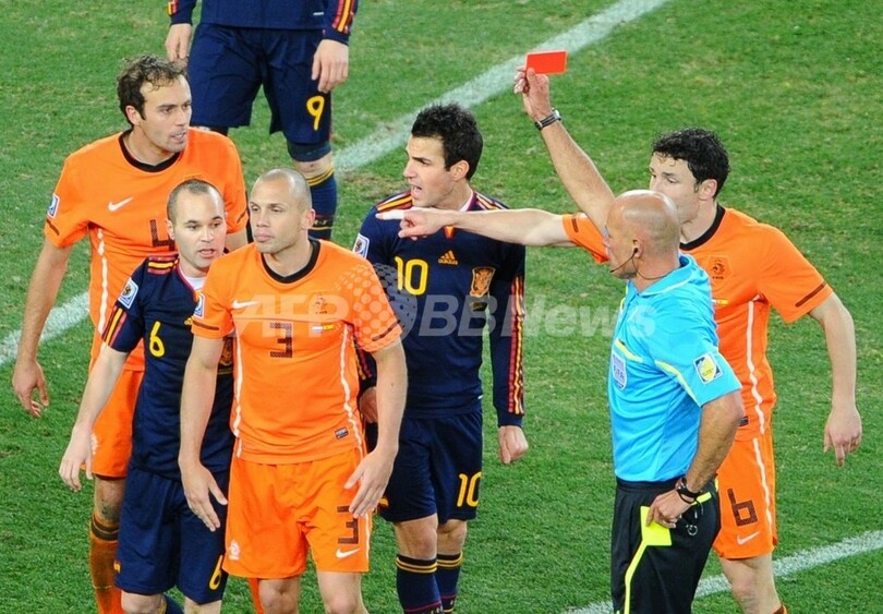 オランダは延長後半4分、2枚目のイエローカードでヨニー・ハイティンガ(Johnny Heitinga)が退場となった。
