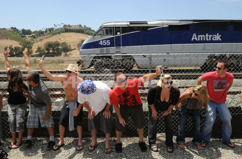 【7月12日 AFP】米カリフォルニア(California)州ロサンゼルス(Los Angeles)郊外の街ラグナニゲル(Laguna Niguel)で10日、毎年恒例の「電車にお尻を見せる」イベントが行われた。イベントは今年で31回目。