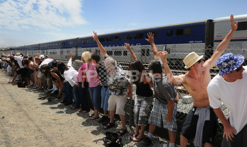 【7月12日 AFP】米カリフォルニア(California)州ロサンゼルス(Los Angeles)郊外の街ラグナニゲル(Laguna Niguel)で10日、毎年恒例の「電車にお尻を見せる」イベントが行われた。イベントは今年で31回目。