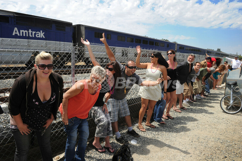 【7月12日 AFP】米カリフォルニア(California)州ロサンゼルス(Los Angeles)郊外の街ラグナニゲル(Laguna Niguel)で10日、毎年恒例の「電車にお尻を見せる」イベントが行われた。イベントは今年で31回目。
