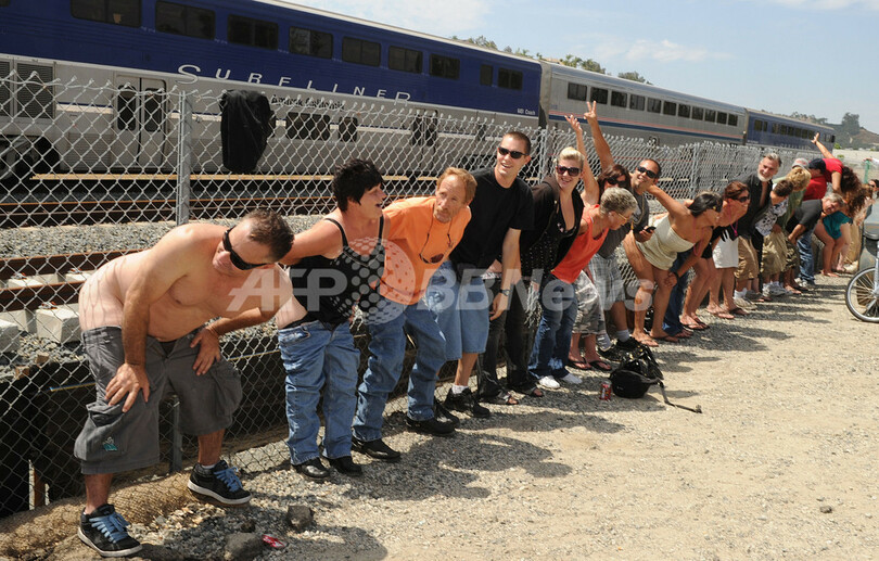 【7月12日 AFP】米カリフォルニア(California)州ロサンゼルス(Los Angeles)郊外の街ラグナニゲル(Laguna Niguel)で10日、毎年恒例の「電車にお尻を見せる」イベントが行われた。イベントは今年で31回目。