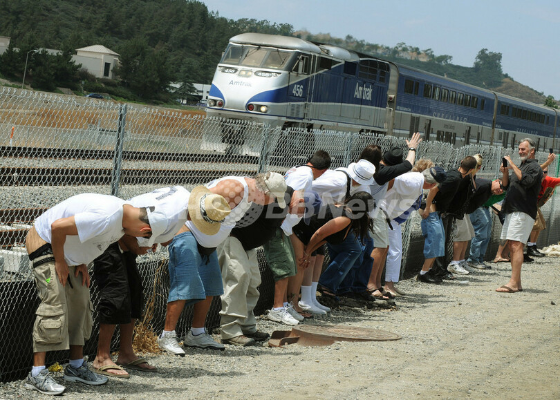 【7月12日 AFP】米カリフォルニア(California)州ロサンゼルス(Los Angeles)郊外の街ラグナニゲル(Laguna Niguel)で10日、毎年恒例の「電車にお尻を見せる」イベントが行われた。イベントは今年で31回目。