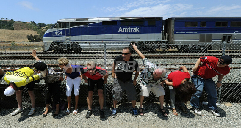 【7月12日 AFP】米カリフォルニア(California)州ロサンゼルス(Los Angeles)郊外の街ラグナニゲル(Laguna Niguel)で10日、毎年恒例の「電車にお尻を見せる」イベントが行われた。イベントは今年で31回目。
