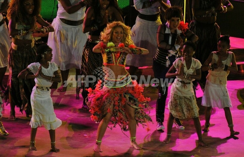 【7月12日 AFP】2010年サッカーW杯南アフリカ大会(2010 World Cup)の閉会式が11日、ヨハネスブルク郊外ソウェト(Soweto)のサッカー・シティ・スタジアム(Soccer City Stadium)で、スペイン対オランダの決勝戦前に行われ、オフィシャルソング「Waka Waka(ワカワカ)」を歌うコロンビア出身の歌手シャキーラ(Shakira)が出演した。(c)AFP