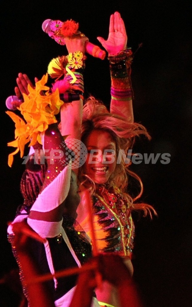 【7月12日 AFP】2010年サッカーW杯南アフリカ大会(2010 World Cup)の閉会式が11日、ヨハネスブルク郊外ソウェト(Soweto)のサッカー・シティ・スタジアム(Soccer City Stadium)で、スペイン対オランダの決勝戦前に行われ、オフィシャルソング「Waka Waka(ワカワカ)」を歌うコロンビア出身の歌手シャキーラ(Shakira)が出演した。(c)AFP