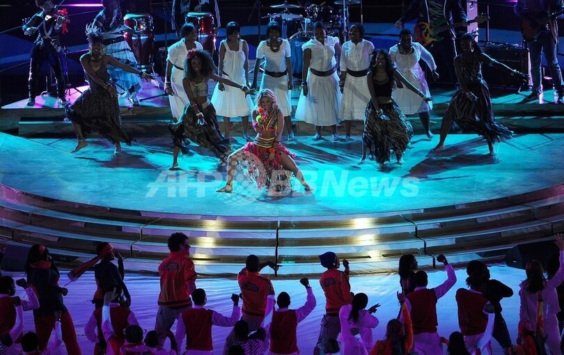 【7月12日 AFP】2010年サッカーW杯南アフリカ大会(2010 World Cup)の閉会式が11日、ヨハネスブルク郊外ソウェト(Soweto)のサッカー・シティ・スタジアム(Soccer City Stadium)で、スペイン対オランダの決勝戦前に行われ、オフィシャルソング「Waka Waka(ワカワカ)」を歌うコロンビア出身の歌手シャキーラ(Shakira)が出演した。(c)AFP