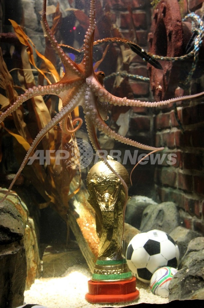 ニュース ライフ こぼれ話 W杯8試合的中の占いタコに優勝トロフィー、ドイツ 2010年7月13日 9:03 発信地:オーバーハウゼン/ドイツ [ ヨーロッパ ドイツ ] このニュースをシェア ‹ › ❮ 2/5 ❯ ドイツ・オーバーハウゼン(Oberhausen)の水族館「シーライフ(Sea Life)」の水槽で、サッカーW杯(World Cup)の優勝トロフィーのレプリカのそばを泳ぐタコの「パウル(Paul)」(2010年7月12日撮影)。(c)AFP/ROLAND WEIHRAUCH 画像作成中 ! 【7月13日 AFP】2010年サッカーW杯南アフリカ大会(2010 World Cup)で、決勝戦を含め計8試合の勝敗を占い、全て的中させたタコの「パウル(Paul)」に12日、W杯トロフィーのレプリカである黄金の「優勝トロフィー」が贈られた。(c)AFP ライフ 一覧へ> メディア・報道関係・法人の方向け 写真・動画 購入のお問合せ>