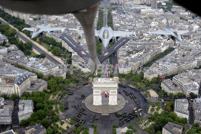 ニュース 政治・経済 フランス革命記念日、恒例の軍事パレード 2010年7月15日 9:32 発信地:パリ/フランス [ ヨーロッパ フランス ] このニュースをシェア ‹ › ❮ 15/16 ❯ フランスは14日、革命記念日(Bastille Day)を迎え、パリ(Paris)で恒例の軍事パレードが行われた。写真は凱旋門(Arc de Triomphe)上空を飛行する仏軍戦闘機ラファール(Rafale)の編隊(2010年7月14日撮影)。(c)AFP/BORIS HORVAT 画像作成中 ! 【7月15日 AFP】フランスは14日、革命記念日(Bastille Day)を迎え、パリ(Paris)で恒例の軍事パレードが行われた。(c)AFP 政治・経済 一覧へ> メディア・報道関係・法人の方向け 写真・動画 購入のお問合せ>