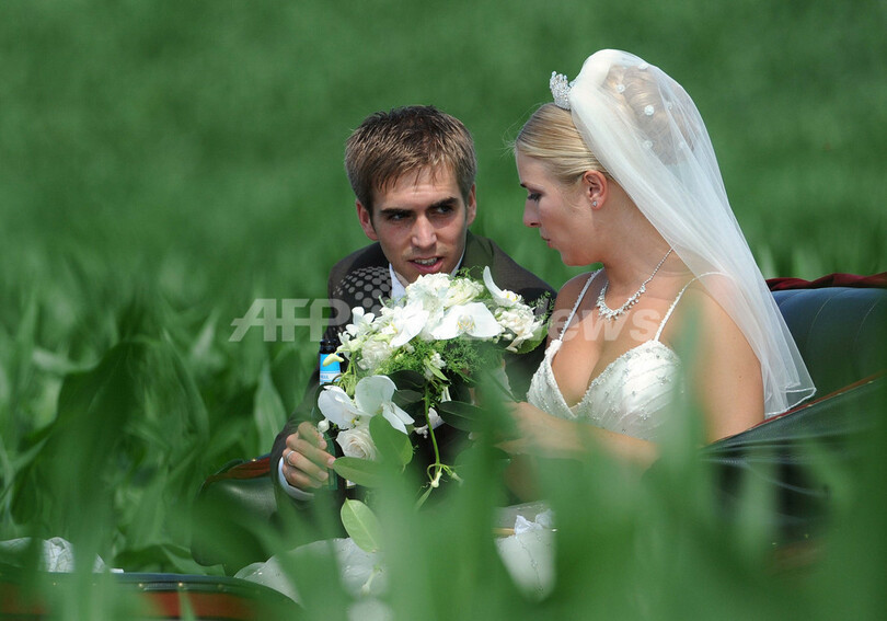 【7月16日 AFP】2010年サッカーW杯南アフリカ大会(2010 World Cup)で3位に入ったドイツ代表のフィリップ・ラーム(Philipp Lahm)が14日、クラウディア(Claudia)さんと同国クラインヘルフェンドルフ(Kleinhelfendorf)の教会で結婚式を挙げた。(c)AFP
