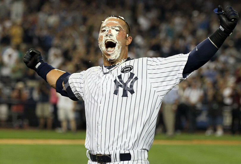 ヤンキースはニック・スウィッシャー(Nick Swisher)が9回二死、1、2塁で適時打を放ち、5-4でサヨナラ勝ちを収めた。(c)AFP