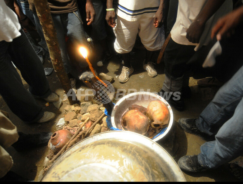 ニュース ライフ ハイチ大地震から半年、祈るブードゥー教の巡礼者たち 2010年7月18日 16:46 発信地:ソー・ドー/ハイチ [ 中南米 ハイチ ] このニュースをシェア ‹ › ❮ 14/20 ❯ 25万人を超える人が亡くなった1月のハイチ大地震から半年が過ぎた。聖地とされる丘で2週間にわたって行われるブードゥー教の年中行事に大勢の人が訪れた。写真は、ハイチの首都ポルトープランス(Port-au-Prince)から約68キロ、ブードゥー教の年中行事で使われる人間の頭蓋骨(2010年7月16日撮影)。(c)AFP/Thony BELIZAIRE 画像作成中 ! 【7月18日 AFP】25万人を超える人が亡くなった1月のハイチ大地震から半年が過ぎた。聖地とされる丘で2週間にわたって行われるブードゥー教の年中行事に大勢の人が訪れた。(c)AFP ライフ 一覧へ> メディア・報道関係・法人の方向け 写真・動画 購入のお問合せ>