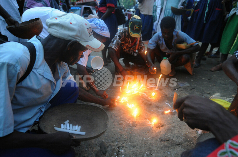 写真はハイチの首都ポルトープランス(Port-au-Prince)から約68キロ、ブードゥー教の年中行事が行われる街ソー・ドー(Saut d'Eau)でろうそくをともす巡礼者たち(2010年7月16日撮影)。(c)AFP/Thony BELIZAIRE