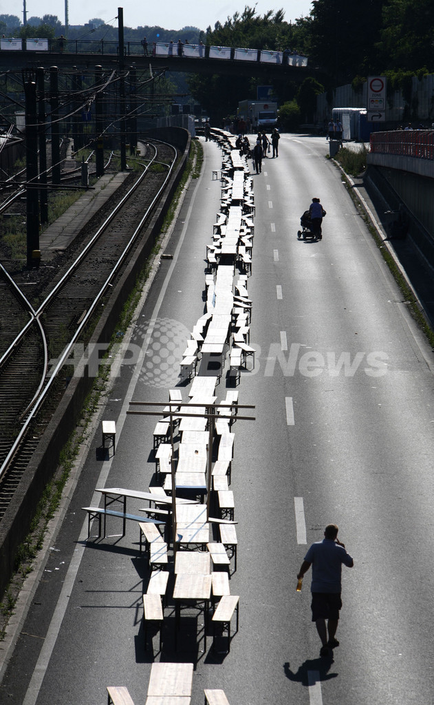 ニュース ライフ 主要道路を歩行者に開放、ドイツの文化イベント 2010年7月19日 10:48 発信地:ドイツ [ ヨーロッパ ドイツ ] このニュースをシェア ‹ › ❮ 2/60 ❯ EU加盟国の中から1都市を選び、「欧州文化都市」として年間を通じて様々な文化行事を行うプログラムが、今年はドイツ・ルール(Ruhr)地方で開催されている。この一環として18日、ドルトムント(Dortmund)とデュイスブルク(Duisburg)を結ぶ主要道路から60キロにわたって車両を一掃し、31時間にわたり歩行者やサイクリストに開放するというイベントが行われた。イベントには約200万人が集まり、中には米国、日本、欧州からの参加者もいた。写真は、エッセン(Essen)近くの道路に並べられたテーブル(2010年7月18日撮影)。(c)AFP/PATRIK STOLLARZ 画像作成中 ! 【7月19日 AFP】EU加盟国の中から1都市を選び、「欧州文化都市」として年間を通じて様々な文化行事を行うプログラムが、今年はドイツ・ルール(Ruhr)地方で開催されている。この一環として18日、ドルトムント(Dortmund)とデュイスブルク(Duisburg)を結ぶ主要道路から60キロにわたって車両を一掃し、歩行者やサイクリストに開放するというイベントが行われた。(c)AFP ライフ 一覧へ> メディア・報道関係・法人の方向け 写真・動画 購入のお問合せ>