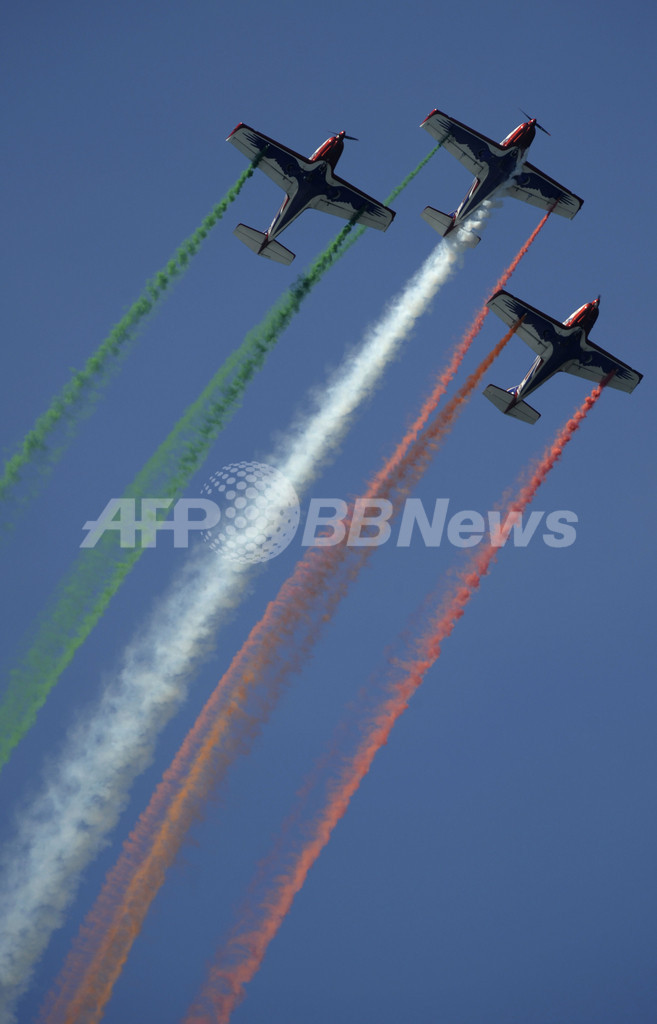 ニュース ライフ こぼれ話 華麗なアクロバット飛行、スペインの航空ショー 2010年7月19日 12:46 発信地:ビーゴ/スペイン [ ヨーロッパ スペイン ] このニュースをシェア ‹ › ❮ 8/13 ❯ スペイン・ビーゴ(Vigo)で18日、ビーゴ国際航空ショー(International Vigo Airshow)が開催された。写真はサミル(Samil)ビーチ上空で曲芸飛行するイタリアの飛行隊「Pioneer」(2010年7月18日撮影)。(c)AFP/MIGUEL RIOPA 画像作成中 ! 【7月19日 AFP】スペイン・ビーゴ(Vigo)で18日、ビーゴ国際航空ショー(International Vigo Airshow)が開催された。(c)AFP ライフ 一覧へ> メディア・報道関係・法人の方向け 写真・動画 購入のお問合せ>