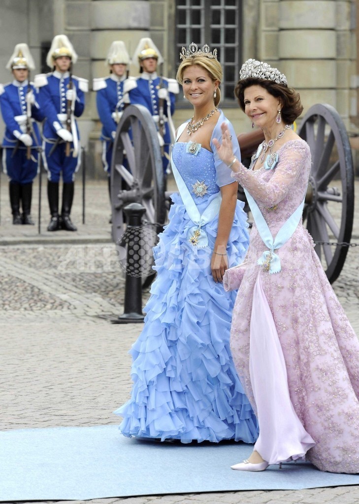 同じ日、ビクトリア王女の母にあたるシルビア王妃も、ドレスと同じピンクシルクサテン地を使った“シケット”パンプスを着用。それぞれの「ロジェヴィヴィエ」スタイルで、会場の注目を集めた。(c)MODE PRESS