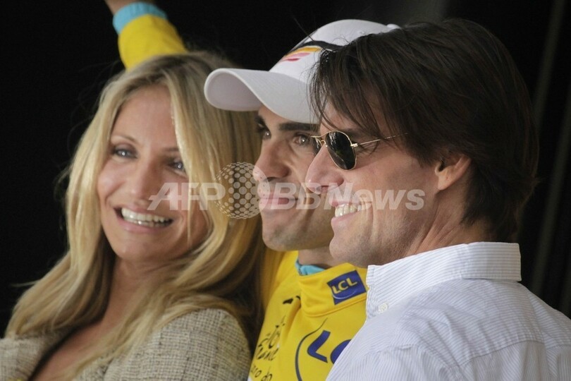 【7月24日 AFP】2010ツール・ド・フランス(2010 Tour de France)で現在個人総合首位に立つアルベルト・コンタドール(Alberto Contador、スペイン)は23日、第18ステージの表彰台で米俳優のトム・クルーズ(Tom Cruise)とキャメロン・ディアス(Cameron Diaz)に称賛され、気後れした様子だった。